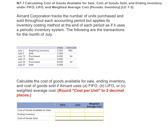 If yous desire to use lifo, you must elect this method, using irs. Instance of lifo suppose at that place's a visitor called one cup, inc. We describe how to calculate the inventory detail on the balance sheet using fifo, lifo, and average cost methods, and consider the results of each. Blazon the total units solved in the textbox.